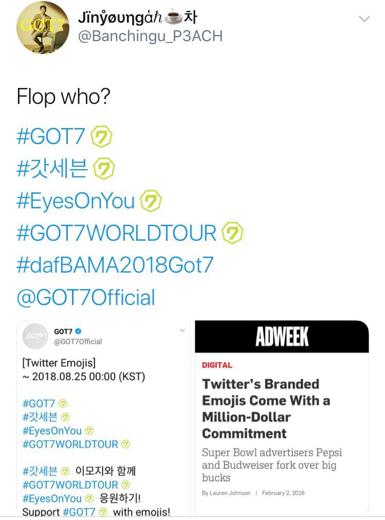 Got7 now has their own twitter emoji. Emojis are supported on ios, android, macos, windows, linux and chromeos. •this emoji maybe represents being a nerd but for me i see this as a dork emoji. What does the fox say? The group is composed of seven members: Y gracias a quienes están suscritos!! 😘 face throwing a kiss emoji 💅 nail polish emoji red heart emoji Get emoji now and use them on your favorite social media platforms and apps, in emails or blog posts. Got7 debuted in january 2014 with the release of their first ep got it?, which peaked at number two on the gaon album chart and number one on billboard's world albums chart. Got7 individual member logo/emoji madqueenemporium. Worldwide shipping available as standard or express delivery learn more. Jyp entertainment's park jin young unfollows got7 members on social media, following news reports about contract discussions bts members once revealed how rm's habit embarrasses them bts's rm once got angry… ️ copy and 📋 paste emoji 👍 no apps required.